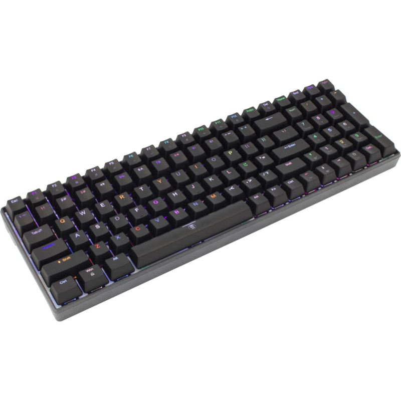 eShark ESL-K2 Katana Клавиатура США   Характеристики   Количество клавиш: 100 Макет: США Раскладка клавиш: Компактная 1800 Тип переключателей: механические переключатели OUTEMU - КРАСНЫЕ Срок службы: 50 млн нажатий Давление: 44,1 +/- 14,7 г Ход переключателей: 4 мм +/- 0,3 мм Anti-Ghosting: 100 клавиш Подсветка: RGB 16,8 млн цветов Цвет: черный/серый Материал: пластик Интерфейс: USB 2.0 Дополнительные ножки для подъема клавиатуры: Нет Длина кабеля (м): 1,8 — Тип C — USB A (съемный) Плетеный кабель: Да Размеры (мм): 366 х 120 х 37 Вес (г): 735