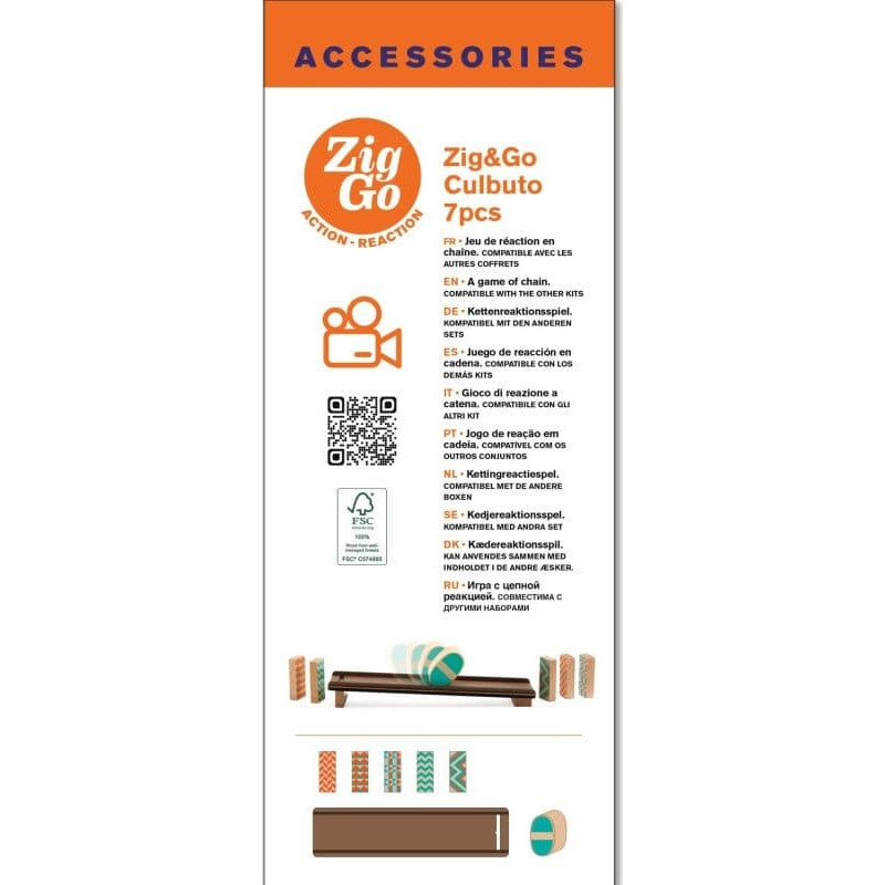 Деревянная строительная игра цепных реакций, мышления и деревянного строительства, чтобы дополнить коллекцию Zig & Go. Дети копируют 3 дизайна в буклете с инструкциями для построения курсов, или придумывают свои собственные - возможности безграничны! Все наборы в коллекции совместимы, для еще более изобретательных курсов действия-реакции! Строительная игра: детям нужно будет использовать умение позиционировать части, чтобы сделать курс. Игра Цепная реакция: дети узнают об изобретательности и магии цепочек движения! Игра в мышление: дети должны думать о том, как быстро будут двигаться фигуры - что зависит от веса - и измерять расстояния между ними. Набор включает в себя 1 деревянную строительную игру с 7 фигурами, включая 4 металлических шарика, и буклет с инструкциями. Подходит с 8 лет. Предупреждение! Не подходит для детей до трех лет, опасность удушья из-за мелких деталей.