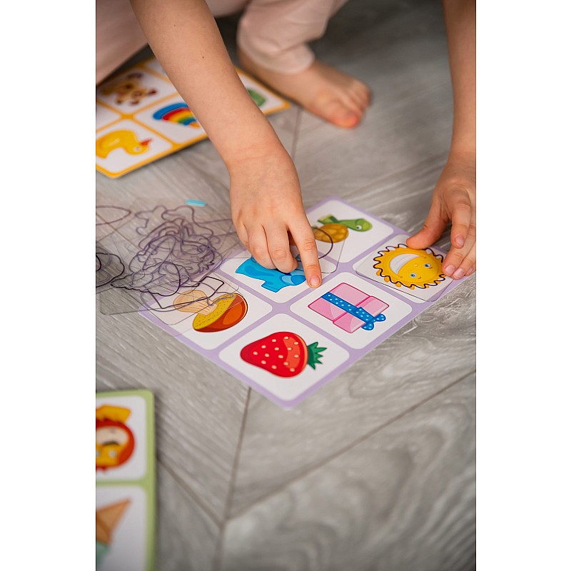 Подбирайте к картинкам подходящие контуры и развивайте логику с Лотто «Контуры» из серии Far Fra Land! Игра в лото развивает внимательность и логику, а также стимулирует развитие реакции и мелкой моторики рук у детей. Найдите пару – контур и предмет Состав игры: игровые поля (14,5 х 21,5 см) – 6 шт и прозрачные карточки (6,5 х 6,5 см) – 36 шт. Как играть? Играйте в лото с одним ребёнком или компанией до 6 игроков. Игра с одним ребёнком. При игре с одним ребёнком уделите внимание обучающему фактору: не торопите малыша с выбором, делайте подсказки, помогайте принять решение. Выберите одну или несколько картонных карточек с картинками и положите их перед ребёнком. Рядом выложите прозрачные карточки. Попросите малыша подобрать недостающие части к объектам на игровых полях. Эти части изображены на прозрачных карточках. Помогите ребёнку правильно разложить все прозрачные карточки на игровых полях. Игра с несколькими детьми. При игре в лото с несколькими участниками занятие приобретает соревновательный характер. Раздайте каждому участнику игры по одному или нескольким игровым полям. Выберите ведущего – рекомендуем назначить на эту роль взрослого или старшего ребёнка. Начинайте игру! Ведущий перемешивает прозрачные карточки, достаёт по одной и показывает игрокам. Участники игры должны оперативно рассмотреть элемент на прозрачной карточке и сопоставить его с картинками на своих игровых полях. Тот игрок, который нашёл совпадение, забирает карточку себе и накладывает её на соответствующую картинку. Если изображение совпало и стало целым – игрок оставляет карточку у себя. Побеждает тот, кто первым соберёт все картинки на своём игровом поле, правильно объединив части в целое. О производителе Игрушки ТМ Far Far Land предназначены для детей от 0 до 5 лет. Под этой ТМ представлены игрушки для раннего развития и формирования основных необходимых малышу навыков. Все игрушки разрабатываются при участии психологов и педагогов. Они следят, чтобы игрушка была безопасна и полезна. Игрушки прошли все тесты качества и имеют европейский сертификат. Развивайте мелкую моторику с самыми первыми пазлами, фантазию и креативность – с помощью мозаики, координацию движений – с мягкими конструкторами, эмоциональный интеллект – с играми на липучках, память – с играми МЕМО и лото, логику и кругозор – с домино. Far Far Land – производитель с более чем 20-летней историей. Компания начиналась как семейный бизнес с менее чем 10 продуктами для своих детей. После большого успеха первых продуктов ассортимент продукции расширялся. Сейчас компания разрабатывает более 300 новинок в год, а ассортимент продукции составляет около 3000 единиц.