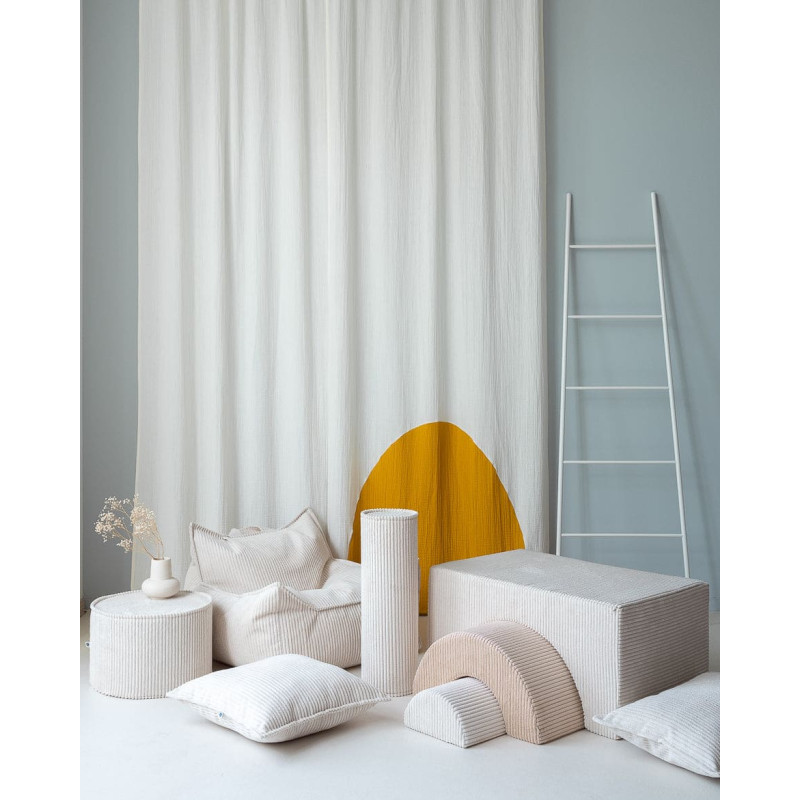 Набор Rainbow от Wigiwama состоит из трех модулей разных форм, которые можно использовать вместе или по отдельности, вдохновляя малышей на игру и воображение. Хотите уютное кресло, игровой столик, мягкий пуф или секретную хижину? Этот универсальный набор справится со всем! Внешний чехол: широковельветовый, сертифицированный OEKO-TEX® и GRS®, из переработанных ПЭТ-бутылок, 100% полиэстер Наполнитель: пенополиуретан, сертифицированный по ISO Размер: Длина 75 см / Ширина 49 см / Высота 37 см Съемный чехол на молнии для удобной стирки согласно инструкции Сделано в Латвии с заботой о планете