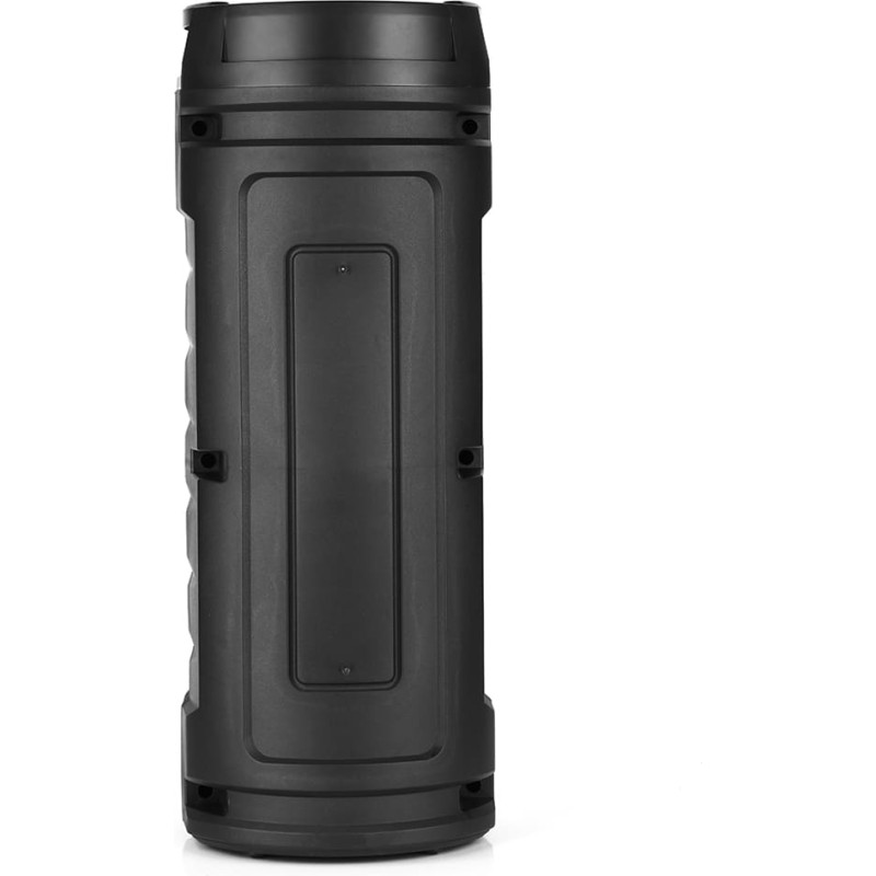 Мощный звук: 50 Вт RMS и 1400 Вт PMPO для чистого и мощного звука. Два динамика по 6,3 дюйма обеспечивают глубокие басы и четкие высокие частоты.   Функциональность караоке: Регулятор громкости микрофона с эффектом ECHO для профессионального звучания. В комплект поставки входит разъем для микрофона 6,3 мм и пульт дистанционного управления для удобства эксплуатации.   Беспроводное подключение: Bluetooth 5.0 + EDR с A2DP и AVRCP обеспечивает стабильный, высококачественный беспроводной звук. Быстрое сопряжение и поддержка большого радиуса действия для бесперебойного воспроизведения с мобильных устройств.   Универсальные варианты мультимедиа: Встроенное FM-радио с автоматическим поиском станций (87,6–108 МГц). MP3-плеер поддерживает карты micro SD и USB-накопители для различных источников звука.   Настраиваемый звук: Регулятор громкости и эквалайзер позволяют настроить звук в соответствии с вашими предпочтениями. Светодиодный дисплей для интуитивного контроля настроек и состояния устройства.   Портативный дизайн: Компактные размеры (228x572 мм) и малый вес (3,03 кг) обеспечивают удобство транспортировки. Идеально подходит для вечеринок, мероприятий или использования в дороге.   Длительное время автономной работы: Встроенный литий-ионный аккумулятор обеспечивает до 8 часов воспроизведения. Удобная зарядка через USB-порт 5 В для быстрого включения питания.   Несколько вариантов подключения: Разъем AUX для прямого подключения устройств. Совместимость с различными источниками мультимедиа для максимальной гибкости.   Удобство дистанционного управления: Полный контроль функций динамика без подхода к устройству. Повышает удобство использования для бесперебойной работы.