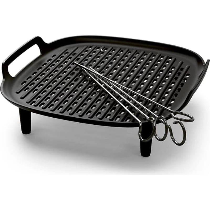 Grila piederumu var izmantot kā otro līmeni, lai palielinātu pagatavojamā ēdiena apjomu! Gluži vienkārši novietojiet savus iecienītos ēdienus, piemēram, burgermaizītes, dārzeņus, vistas stilbiņus un citus gardumus virs un zem grila plātnes, lai maksimāli izmantotu ēdiena gatavošanas vietu savā Airfryer.