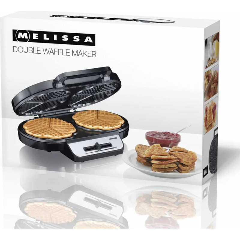 Ar šo vafeļu pagatavošanas ierīci ir iespējams pagatavot divas vafeles vienlaicīgi! Tas nozīmē, ka tiks ietaupīts laiks uz pusi no parastā pagatavošanas laika, lai baudītu svaigas, kraukšķīgas vafeles īsākā laikā. Šī vafeļu pagatavošanas ierīce spēj pagatavot skaistas sirds formas vafeles izmantojot dažādus mīklas veidus. Piemēram, vafeles var pasniegt brokastīs ar svaigiem augļiem vai ievārījumu un pūdercukuru, pagatavot pusdienu maltītēs vafeļu kūku formā vai veselīgas spinātu vafeles vakariņām. Neatkarīgi no tā, kādu variantu vēlies, tas prasīs divreiz mazāk laika, jo šī ierīce vienlaicīgi spēj pagatavot 10 sirds formas vafeles. Vafeles tiek veidotas uz nepiedegošas virsmas pagatavošanas plātnēm. Ar 1200 W jaudu un regulējamu temperatūras vadību tiek nodrošināta vienmērīga gatavošanas temperatūra, lai vafeles būtu vienmērīgi zeltaini brūnā krāsā. Individuāli iestatījumi, lai izvēletos vafeļu iebrūnināšanas pakāpes. Indikatora lampiņa, kas parāda, kad ierīce ir sakarsusi un gatava cepšanai. Pēc pretpiedeguma plākšņu notīrīšanas ierīci var novietot vertikāli, tāpēc tā neaizņem daudz vietas virtuves skapī, neskatoties uz to, ka tā ir dubultā vafeļu panna.