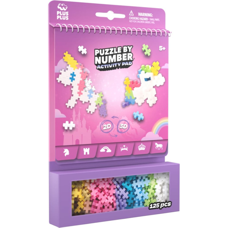 In the activity set you will find instructions for 2D and 3D creations and the Plus Plus pieces needed for them. Plus Plus Puzzle By Number combines the artistry of a paint by number with the satisfaction of a puzzle into a unique creative experience. Using the enclosed pattern, fill in the design by matching each number with the corresponding colour. When done, display it on a table or hang it up as room décor - no glue or ironing required! Kids of all ages love to build with Plus Plus. From open ended to instructed play. From simple shapes and mosaics to advanced 3D designs. Plus Plus stimulates fine motor skills, imagination and creativity. One shape, endless possibilities! Set includes: - Activity pad with 12 activities.