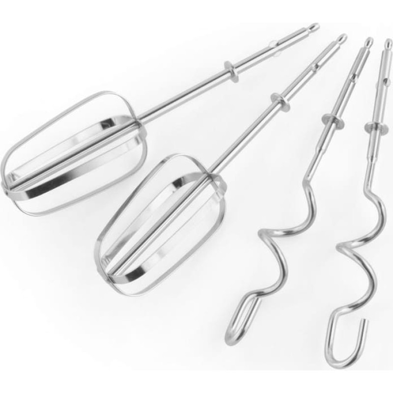 Удобное хранение: в комплект входят венчики для смешивания и крюки для теста, а также подставка для хранения, позволяющая хранить все в порядке. Настройки скорости: 5 скоростей и турбо-функция для любого рецепта. Функция извлечения: легко меняйте насадки или очищайте их с помощью кнопки извлечения. Бесконечное количество рецептов: идеально подходит для взбивания, приготовления безе, взбивания сливок и многого другого!