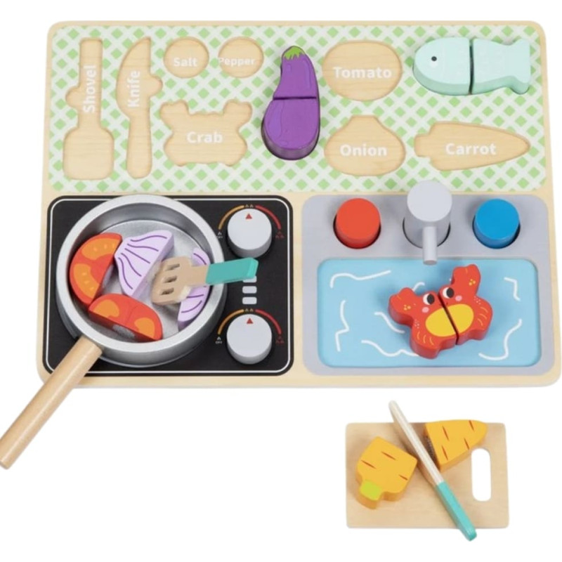 Tooky Toy Drewniana Kuchnia z Akcesoriami - Zestaw Małego Kucharza