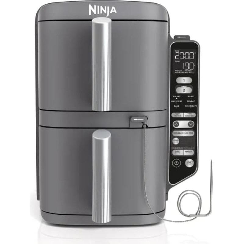 Ninja Double Stack XL 2 atvilktņu karstā gaisa friteris ar Smart Cook sistēmu nodrošina pilnīgu kontroli pār gatavošanas rezultātiem, pateicoties integrētajam digitālajam pārtikas termometram, kas nepārtraukti uzrauga ēdiena temperatūru un pārtrauc gatavošanu, kad ēdiens ir ideāli pagatavots. No vidēji cepta steika līdz grauzdētai vistas gaļai - vairs nav jāuztraucas par nepietiekami pagatavotu vai pārceptu ēdienu. Vienkārši perfekti rezultāti, katru reizi.
