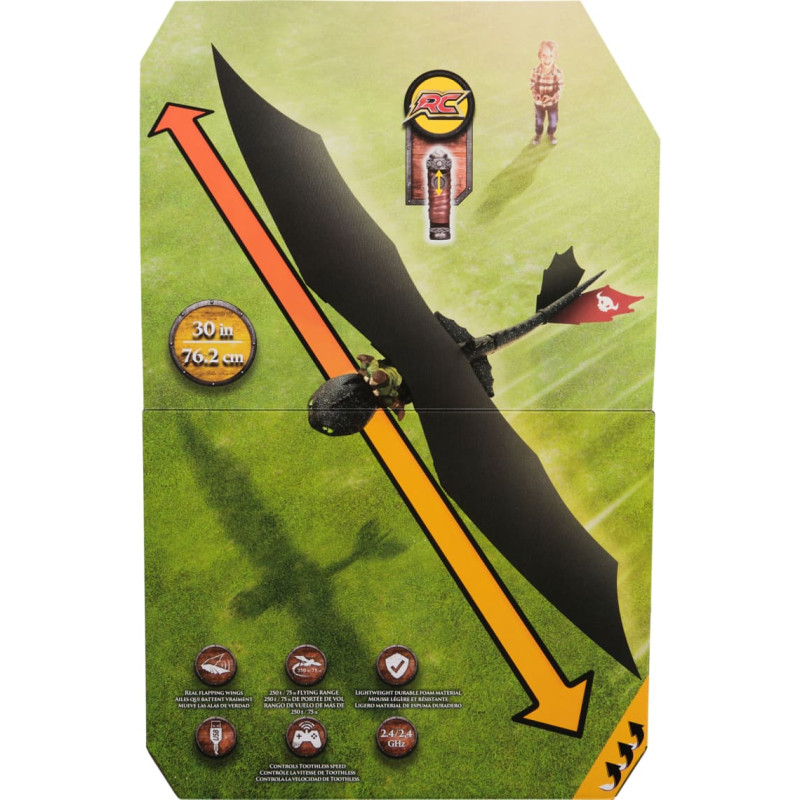 Взлетай вместе с настоящим летающим радиоуправляемым Беззубиком из «Как приручить дракона»! Эта игрушка-вертолет с настоящими хлопающими крыльями из легкого и прочного вспененного материала и регулируемым хвостом позволяет управлять траекторией полёта. После сборки приготовься наблюдать, как Беззубик парит в воздухе — с помощью простого в управлении пульта с дроссельной заслонкой ты сможешь поддерживать нужную скорость. В комплект входит пульт управления 2,4 ГГц с дальностью до 76 метров, чтобы маленькие и большие исследователи могли отправляться с Беззубиком в эпические приключения. Время полёта до 10 минут на одной зарядке. Для зарядки используй упаковку и входящий в комплект кабель USB-C, чтобы веселье не останавливалось.