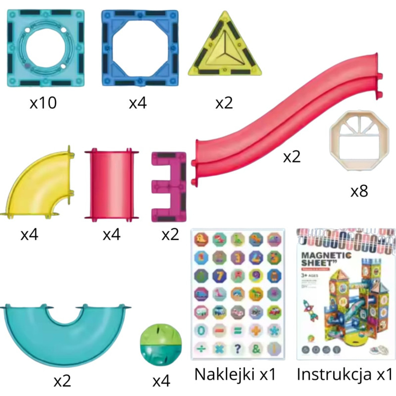 Woopie Klocki Magnetyczne Konstrukcyjne 3D Zestaw Edukacyjny Tor Kulkowy 42 el.