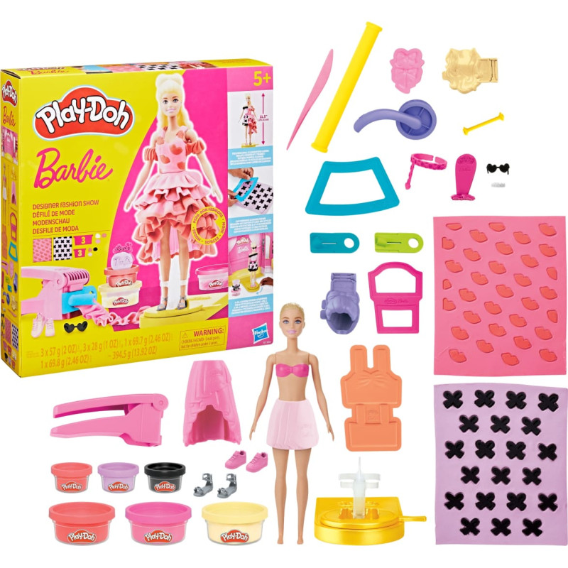Воображаемая игра выходит на подиум с набором Play-Doh Показ мод Барби! Этот игровой набор Barbie «2-в-1» — студия и подиум — предлагает множество увлекательных способов создать великолепные модные образы. Следуйте инструкции, чтобы воссоздать два фирменных стиля, или проявите креативность и создайте собственную одежду для куклы Barbie из массы для лепки Play-Doh. Две трафаретные формы с узорами в виде губной помады и бантиков выглядят почти как ткань — только сделаны из массы для лепки Play-Doh! В комплект также входят 6 дополнительных баночек, с помощью которых можно добавить детали: волосы, оборки, искусственный мех и многое другое. Дополните образ модными аксессуарами — бантиками, обувью — и продемонстрируйте стиль Barbie на вращающемся подиуме.