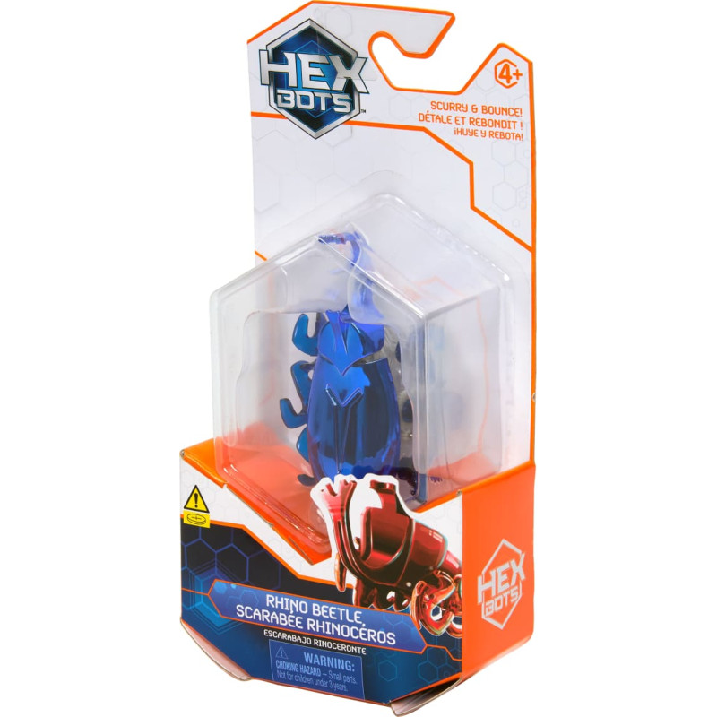 Откройте для себя мир роботизированных чудес HEX BOTS! Катящийся на шести колесах, с изогнутым телом и длинным рогом жука-носорога, этот свирепый робот будет будоражить воображение, снуя туда-сюда по полу. Ваш любимый жук станет вашим любимым роботом!