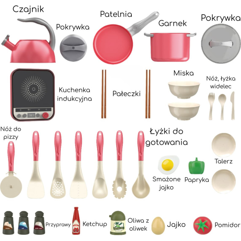 Woopie Zestaw Małego Kucharza Indukcja Garnki Patelnia Czajnik Różowy 30el.