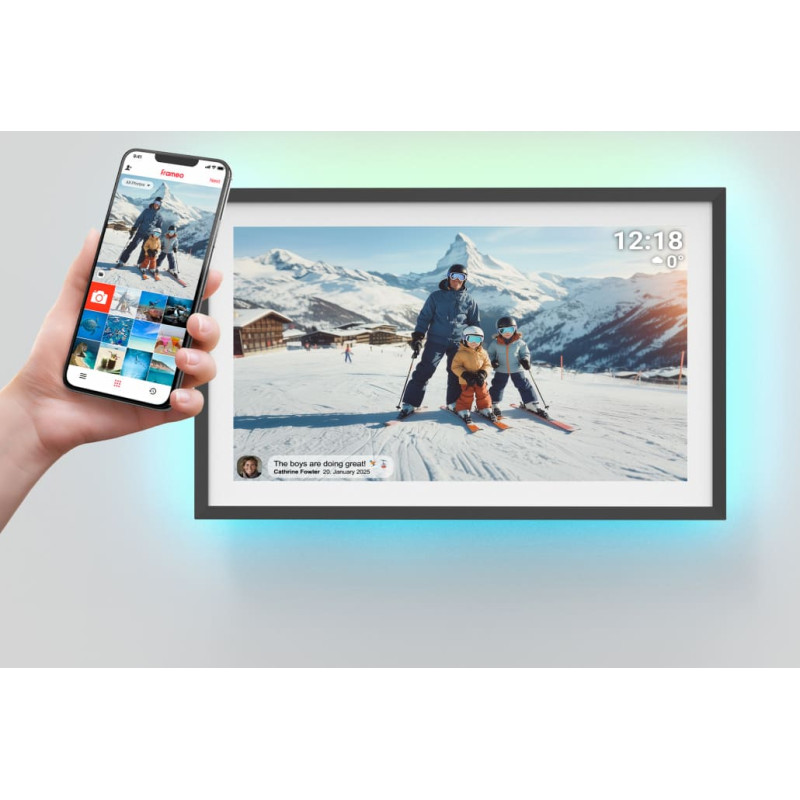 Потрясающие изображения и большой объём памяти Демонстрируйте свои воспоминания на 10,1-дюймовом сенсорном IPS-экране с разрешением 1280x800. Благодаря 16 ГБ флеш-памяти вы можете сохранить тысячи фотографий прямо на рамке.   Легкая отправка фотографий Предустановленное программное обеспечение FRAMEO позволяет легко отправлять фотографии и видео со смартфона прямо на фоторамку — идеальное решение для связи с близкими.   Уникальный опыт общения в социальных сетях FRAMEO позволяет сотням друзей делиться фотографиями и видео прямо на вашей рамке, дополняя их личными сообщениями, что делает общение ещё более значимым.   Полный контроль под рукой Управляйте списком друзей, удаляйте и добавляйте пользователей, а также устанавливайте интервалы смены фотографий (от 10 секунд до 30 минут) — всё это прямо с интуитивно понятного сенсорного экрана.   Удобные и интеллектуальные функции Используйте встроенный таймер для автоматического отключения рамки на ночь, чтобы она работала только тогда, когда вам нужно.