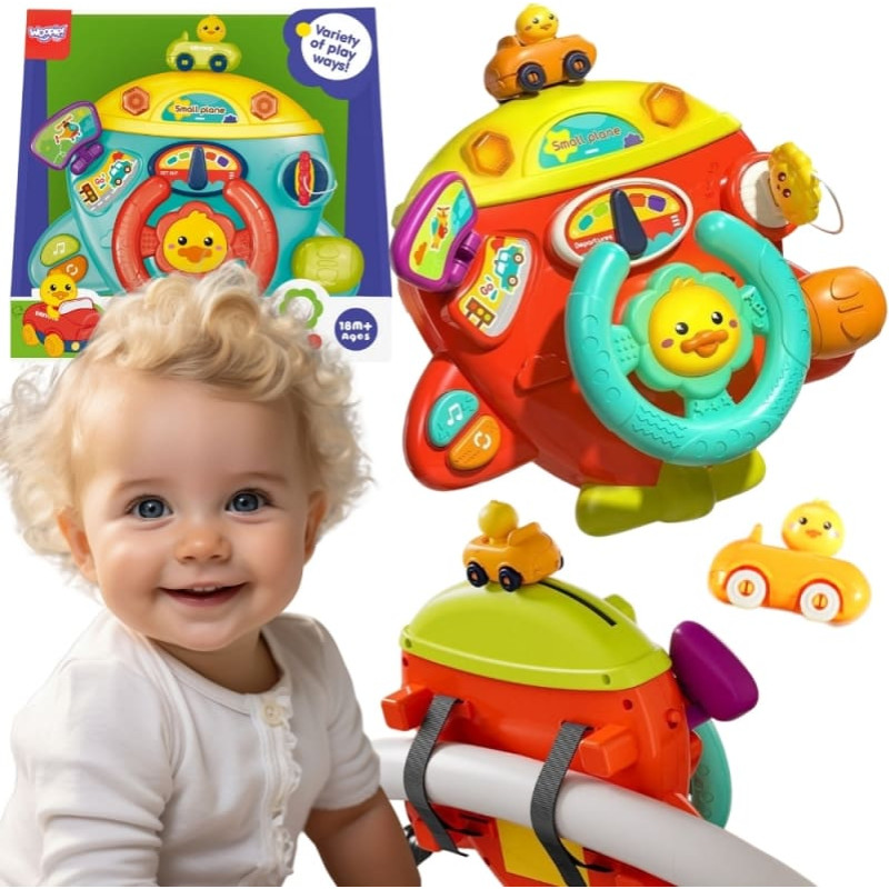 Woopie BABY Interaktywna Kierownica Samolot Pojazd na Łózeczko Wózek Efekty 18m+