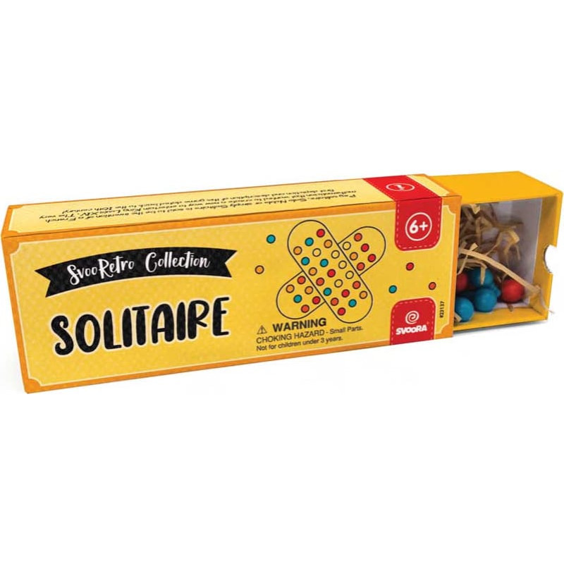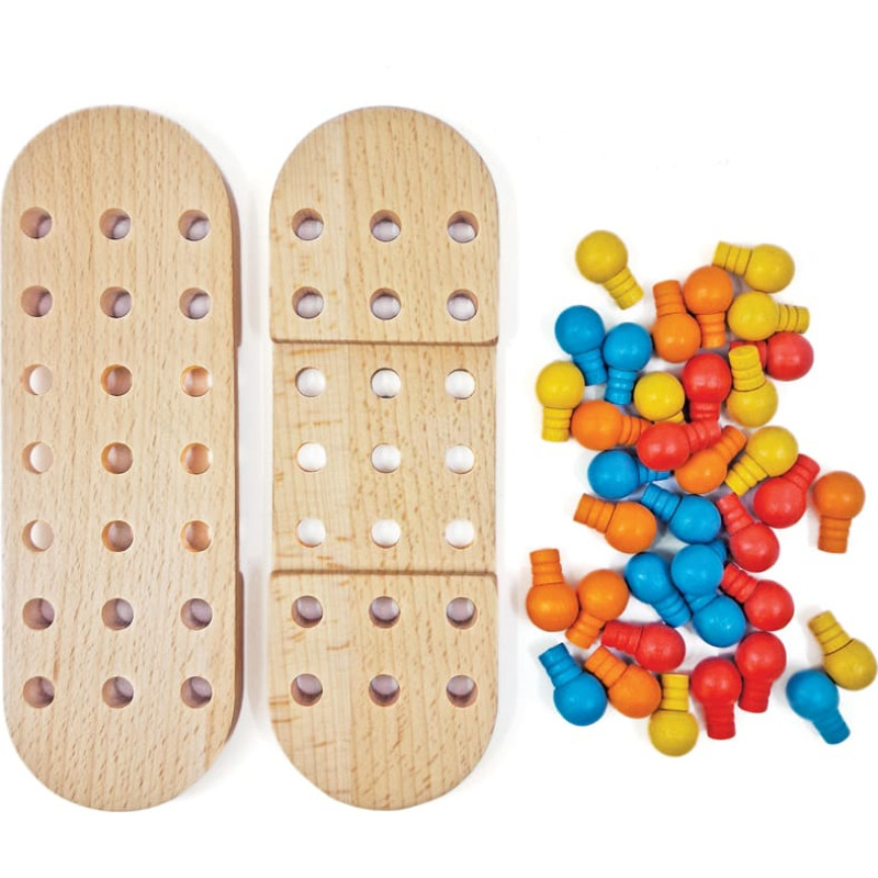 Solitaire is an all-time-classic game that promotes observation and strategic thinking. How to play? Place all the wooden pegs on the board, leaving one empty space in the center. With each move, jump one peg over another to an empty space - the peg that was jumped over is removed. You can only move horizontally or vertically. You cannot jump sideways, diagonally or across two spaces. Play until there are no more possible moves. The goal is to leave just a single peg on the board! Set includes: - 2 base parts that form the game board.