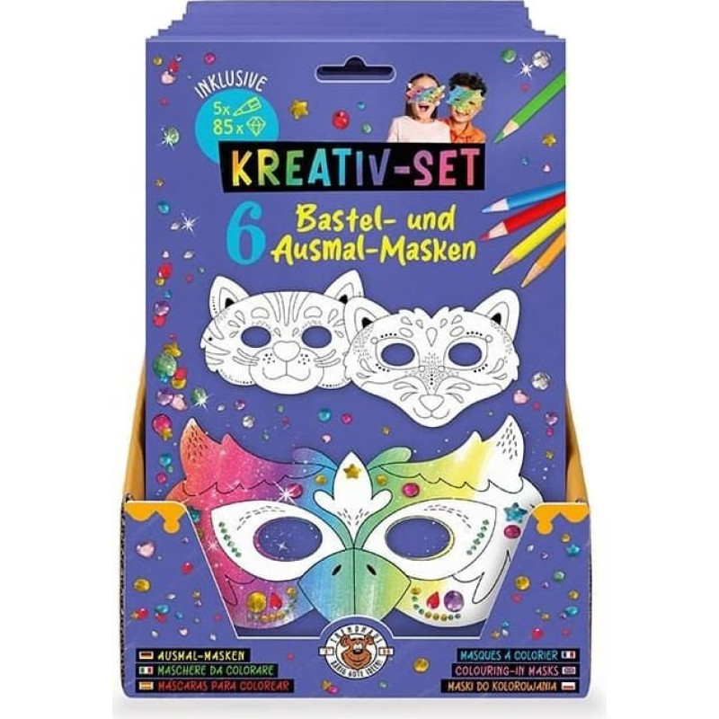 Этот набор для изготовления и раскрашивания масок предлагает разнообразное и творческое занятие. Идеально подходит для дней рождения, вечеринок или скучных послеобеденных часов! В набор входит 6 высококачественных бумажных масок с различными изображениями животных, эластичная лента (4,2 м) для крепления масок, 85 цветных алмазных наклеек и 5 цветных карандашей. Внимание! Не подходит для детей младше 36 месяцев. Мелкие детали. Опасность удушья. Рекомендуется присмотр взрослых. Пожалуйста, сохраните это предупреждение!