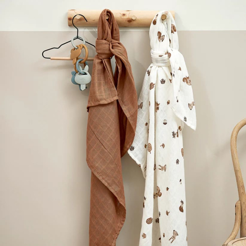 Meyco Baby muslīnu autiņu komplekts Forest Animals Toffee (2 gab., 120x120 cm)
