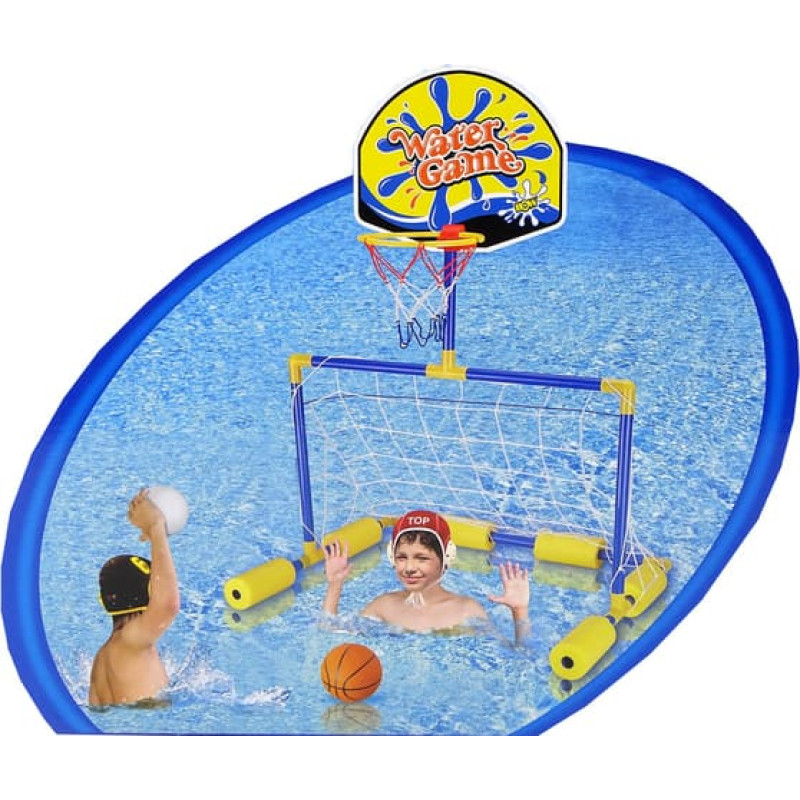 Šis komplekts ir ideāli piemērots bērniem, kuriem patīk pavadīt laiku spēlējoties ūdenī. Zilie vārti ir izgatavoti no plastmasas elementiem, kas pārklāti ar putām, ļaujot tiem peldēt pa ūdeni. Tas ir lielisks risinājums, kas ļauj ērti novietot vārtus baseinā, ezerā vai pludmalē. Vārtiem ir arī praktisks tīkls, kas padara spēli vēl jautrāku. Komplektā ietilpst arī basketbola grozs. Bērni var uzlabot savas futbola prasmes, metot bumbu vārtos vai grozā un izbaudot veiksmīgu sitienu.