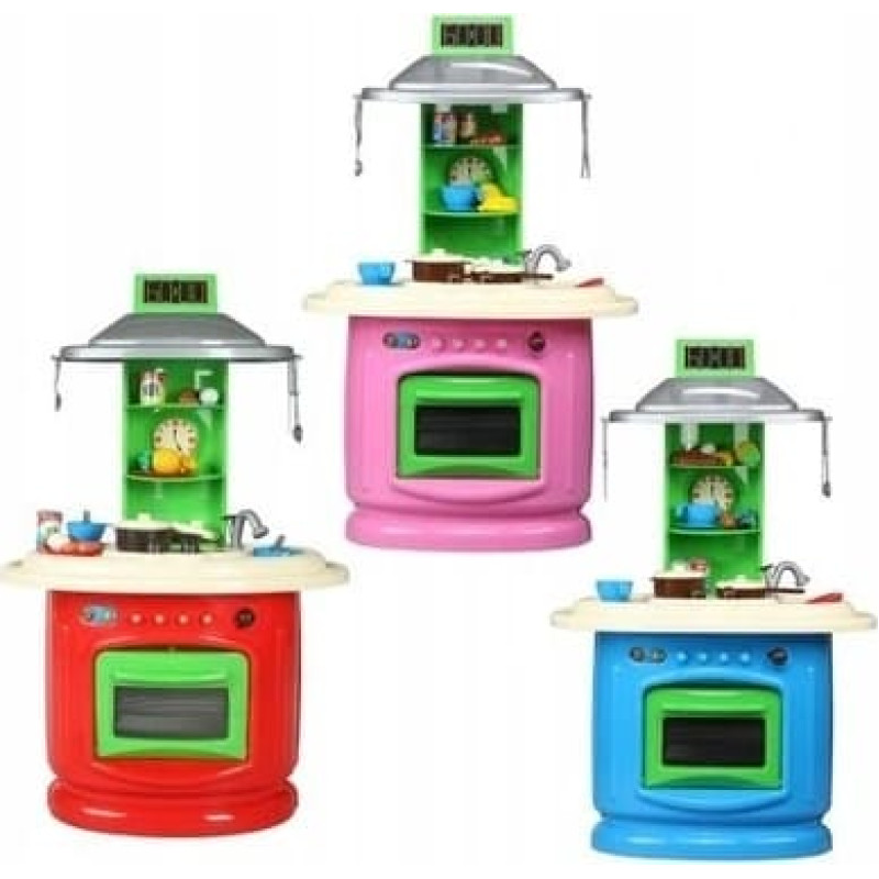 Rotaļlietai nav nepieciešamas baterijas.Virtuve ir pieejama dažādās krāsās, piemēram, sarkanā, zilā un rozā. Ideāla ideja lieliskai dāvanai. Iepakojuma izmērs: 63 x 49 x 34 cm. Ražots Polijā.