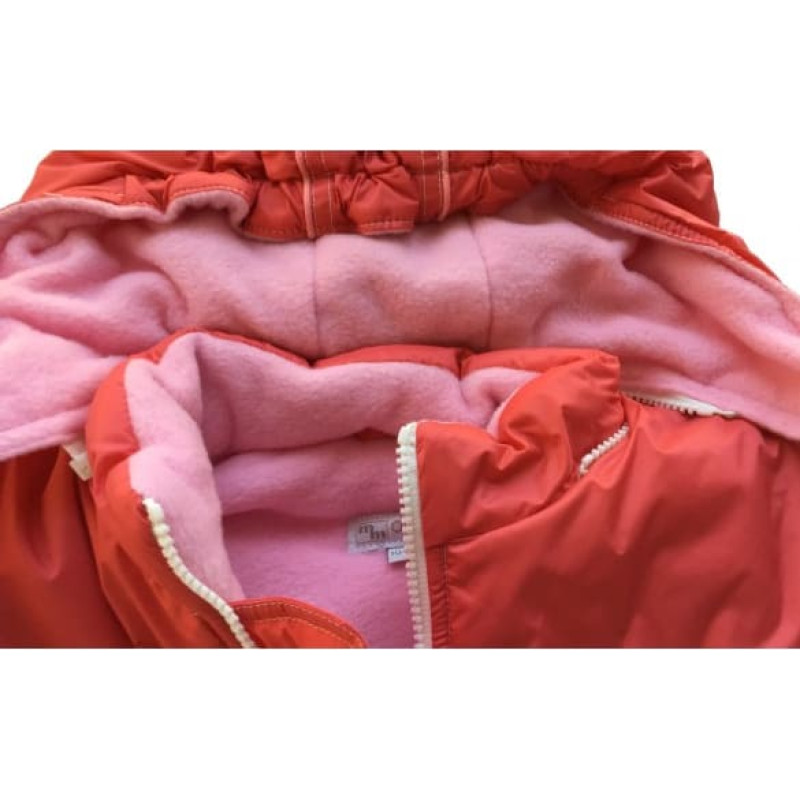 Kombinezons sastāv no siltas virsjakas ar flīsa oderi, noņemamo kapuci, trīs kabatām un SKI tipa biksēm ar regulējamām lencēm.