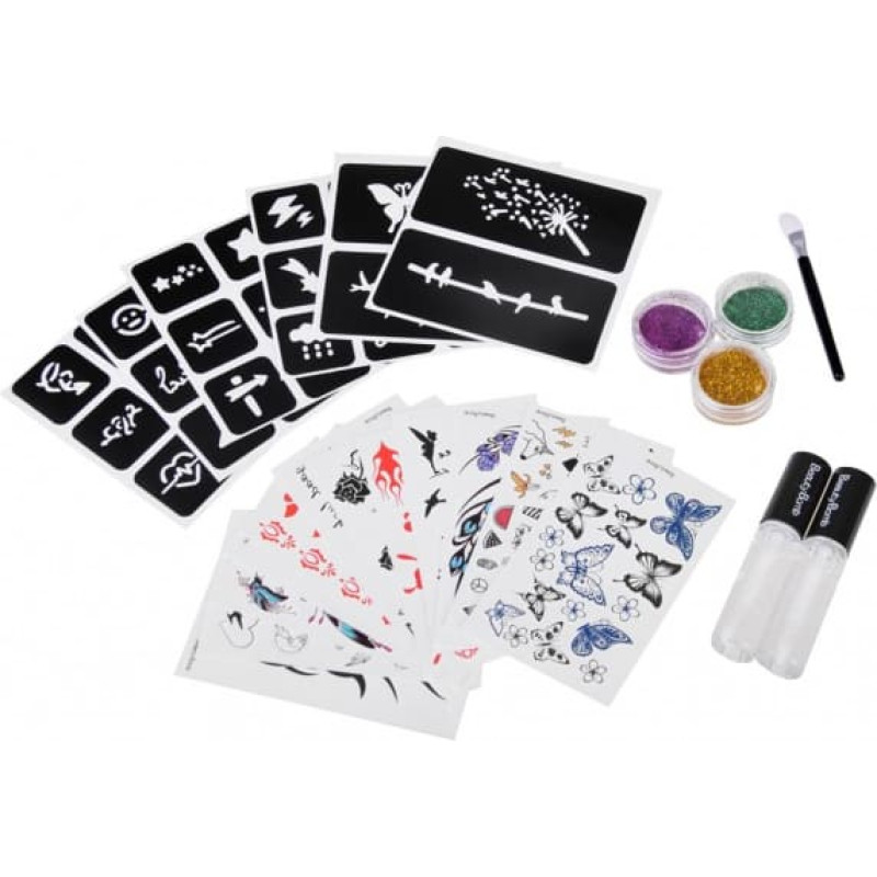 Mazgājams tetovējumu komplekts ir piemērots jebkurai bērnu ballei, svētkiem, Jaunajam gadam, karnevālam vai dzimšanas dienai. Krāsaini tetovējumi sagādās daudz prieka un būs jauks suvenīrs jautrai laika pavadīšanai. Tetovējumi ir droši mazuļa maigajai ādai, tikai dažas vannas, un mākslas darbs būs pazudis, un izklaide var sākties no jauna.