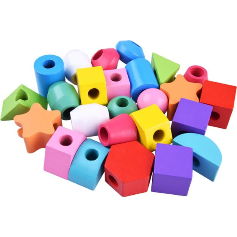 Koka izglītojoša rotaļlieta-puzle ļaus praktizēt daudzas prasmes vienlaikus. Tā pozitīvi ietekmē redzi un tausti, kā arī spēju atšķirt formas, krāsas, attīsta acu-rokas koordināciju un roku veiklību. Bērns ar koka puzli var spēlēties divos veidos - uzliekot kubiņus uz stabiņiem atbilstoši komplektā iekļautajām kartēm vai uztinot uz aukliņas. Klučiem ir bagātīgas, košas krāsas un tie noteikti piesaista bērnu uzmanību, mudinot viņus rotaļāties.