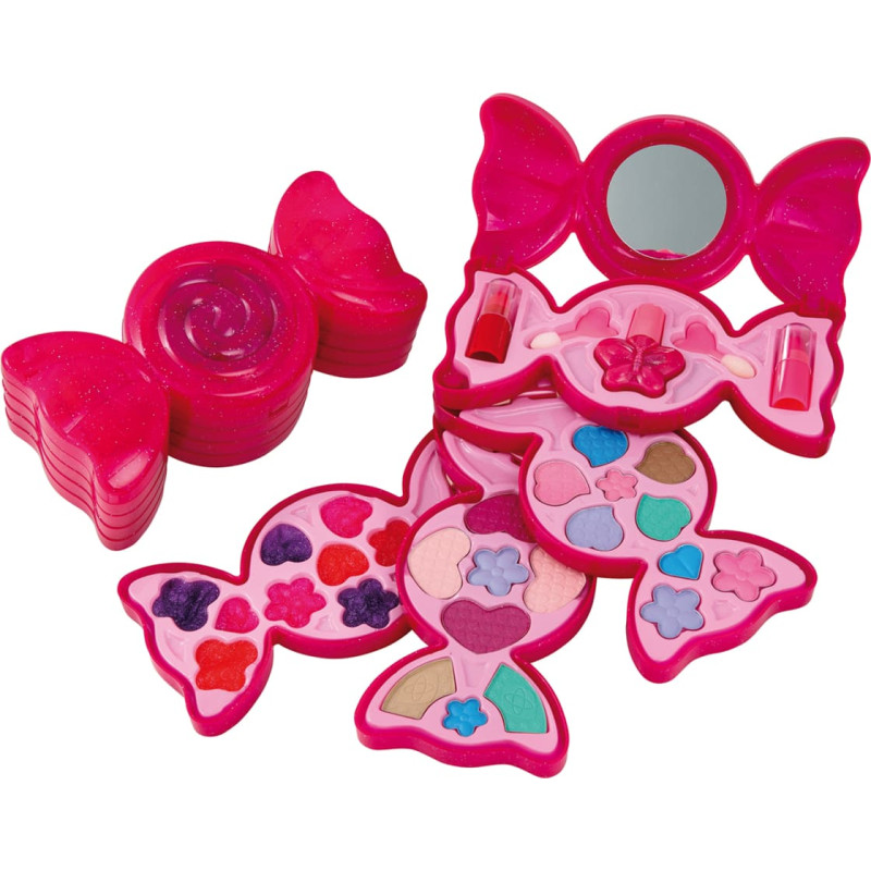 Компания Happy People была основана в Бермене в 1965 году. Широкий ассортимент продукции включает как успешные бренды, так и лицензионные марки. Все продукты тщательно проверяются на качество и функциональность. Этот набор косметики идеально подходит для маленькой девочки, которая ценит красоту и красивый макияж. В набор входят зеркало, подводка для губ, помада разных цветов, лак для ногтей, аппликатор для нанесения помады и кисточка. Косметический набор имеет форму конфеты и различные уровни.