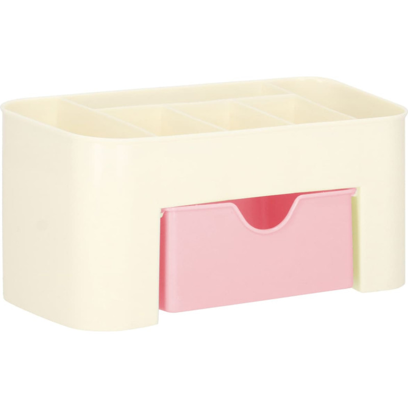 Цвет: кремовый, розовый Материал: ПП Количество отсеков: 6 Ящик: да ПАРАМЕТРЫ: Высота: ок. 10 см Ширина: 21 см Глубина: 10 см Размеры отдельных отсеков: Ящик: 12x10x 5 см. Боковые отделения: 4x10x10 см. Большое среднее отделение: ок. 4x3,5x12 см Меньшие средние отделения: ок. 4x4x7 см