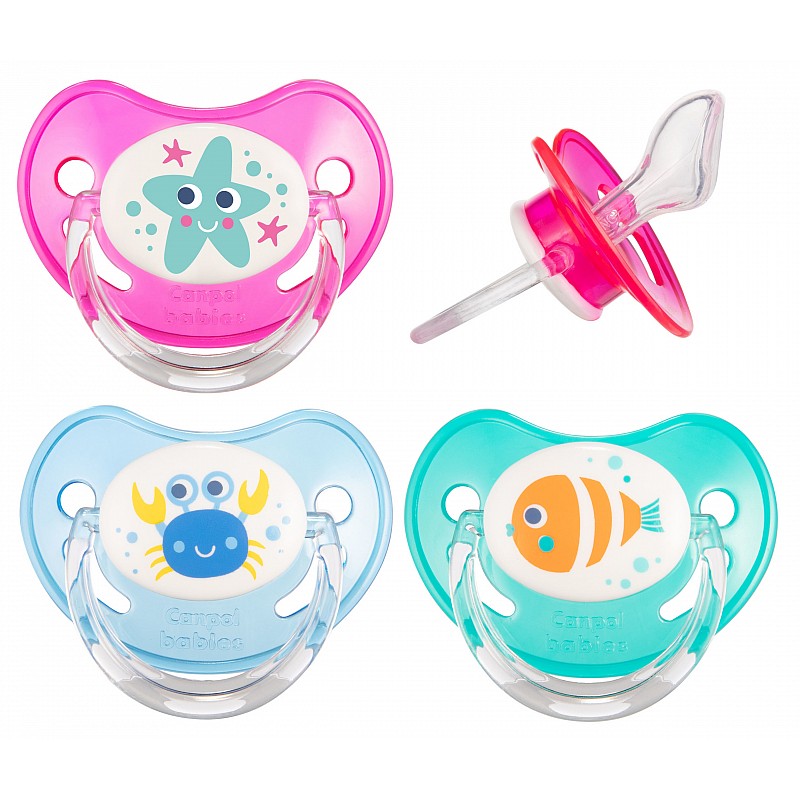 Анатомическая форма пустышки обеспечивает формирование правильного прикуса и челюстно-лицевого аппарата в целом. Имитирует форму соска материнской груди в момент кормления. Воздух выходит через специальное отверстие, благодаря чему пустышка остается мягкой и сохраняет свою форму, что предотвращает деформацию полости рта ребенка. 1 размер – от 0 до 6 месяцев