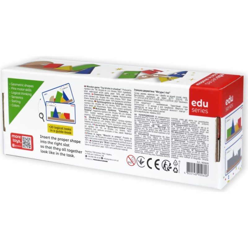 Materials: natural wood, certified safe varnish and water-based paints. Packaging size: 27 x 9 x 6 cm. Made by Igroteco Ltd., Ukraine. Product bears the CE marking. WARNING! Not suitable for children under 3 years. Small parts. Choking hazard.