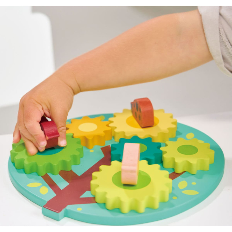 6 interlocking gears that spin all together as long as one of them is spun. Charming figurines decorate the cogs. The snail, bird, and ladybird are ready to spin and twirl with each twist. Perfect tool for the development of fine motor skills and a great example of cause and effect. Toy size 20 x 20 x 5.5 cm. Packaging size 19.8 x 6.1 x 20.4 cm. Crafted from rubber wood, a by-product of the latex industry, making clever use of resources that might otherwise go to waste and taking a small but impactful step in caring for our environment. Reccomended for ages 18 months and up. Product bears the CE marking. Made in Indonesia, Created by Cyrus International Co. Ltd, Mentari, USA.